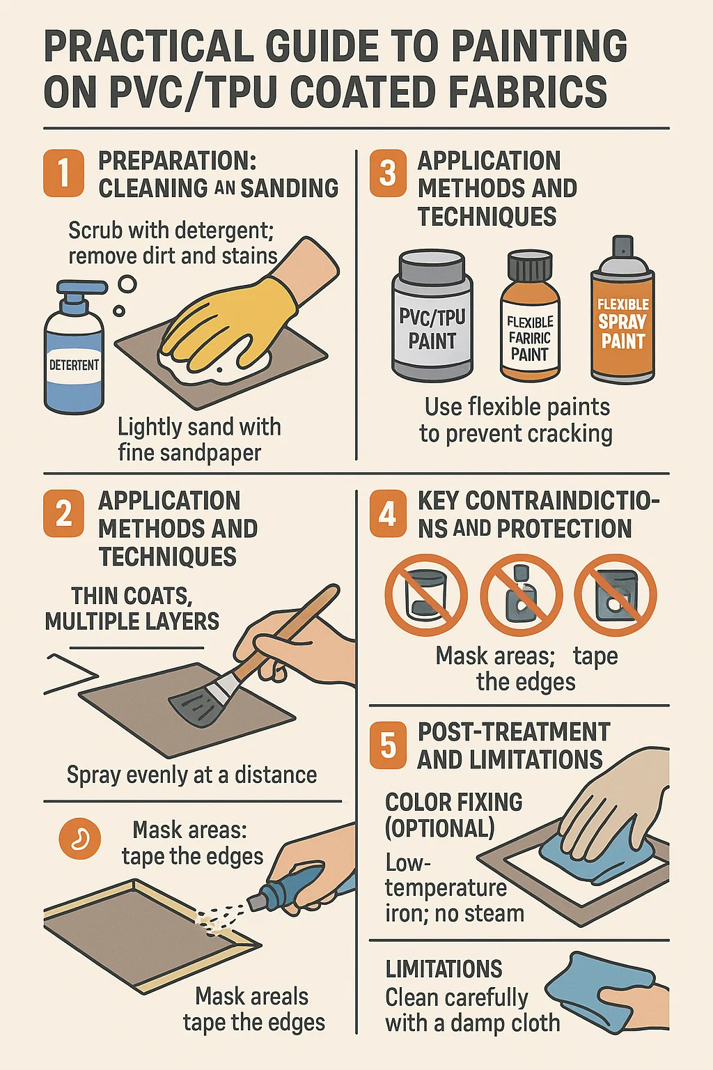 Here is a practical guide to painting on PVC coated fabrics and TPU coated fabrics, incorporating common operating experience and precautions: