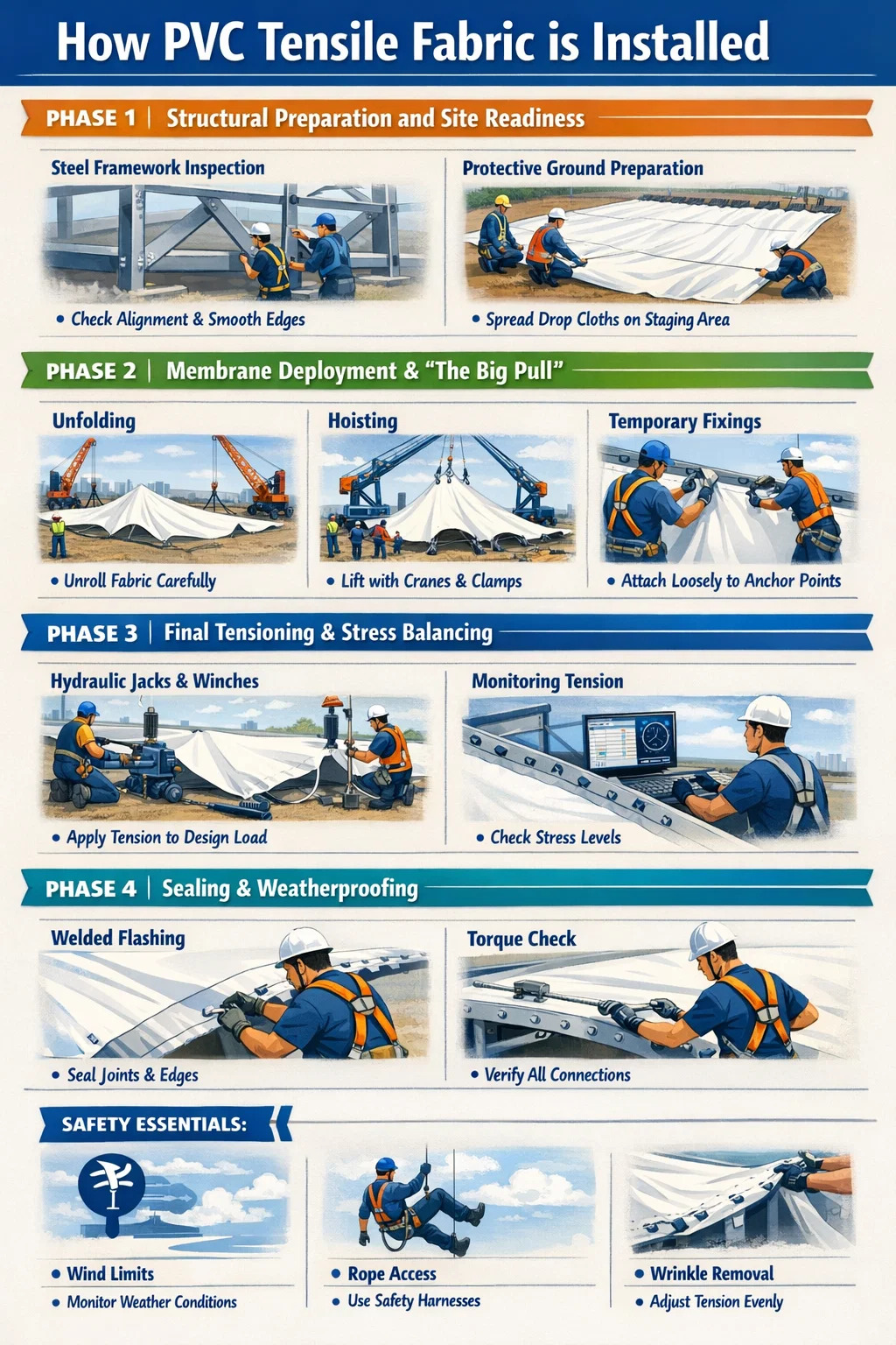 - 1 The Direct Answer: How PVC Tensile Fabric is Installed