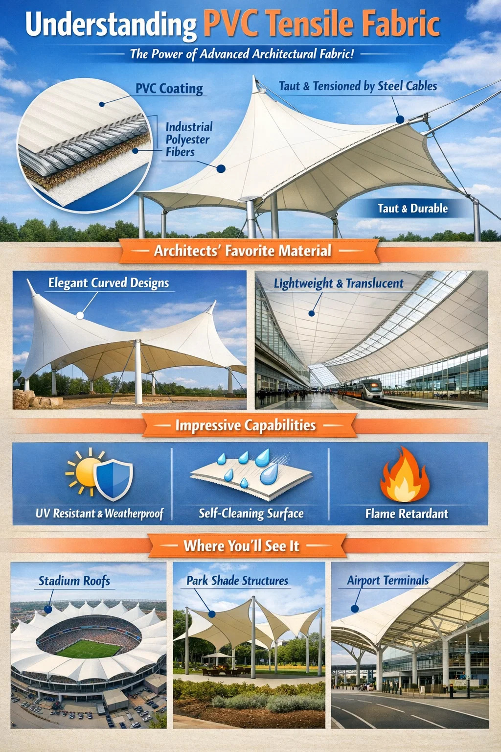 Here is a detailed introduction to PVC tensile fabric: